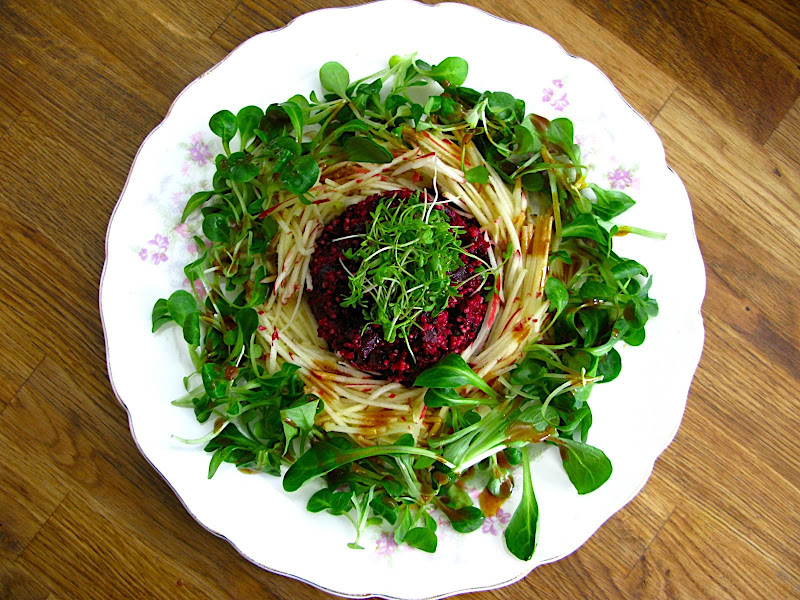 Roasted Beet & Meyer Lemon Tabulleh with Jonagold Apple, Georgia Mâche and Sunflower Sprouts