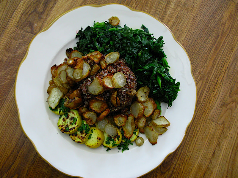 Grilled Florida Squash, Steamed Georgia Kale & Roasted Georgia Sunchokes with Sage-Marsala Red Quinoa