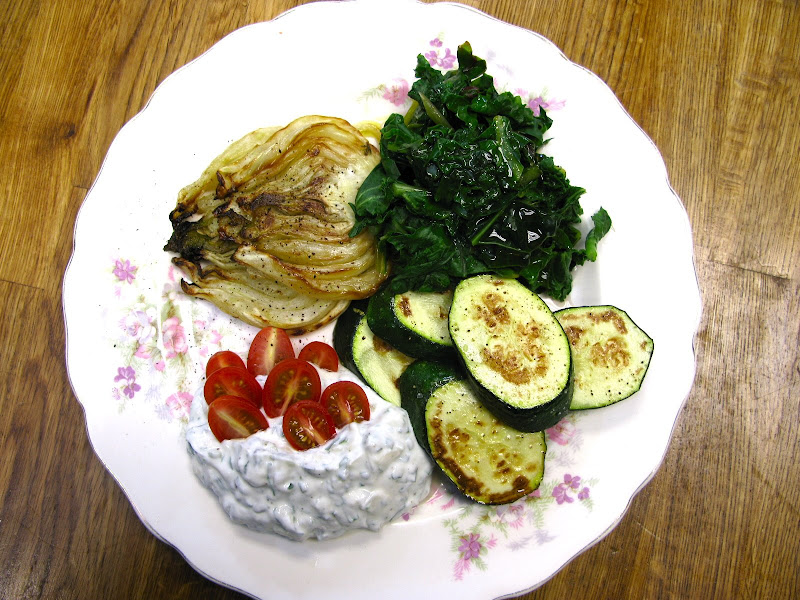 Roasted Fennel, Grilled Zucchini, Cherry Tomatoes, Steamed Greens & Sorrel Tsatziki