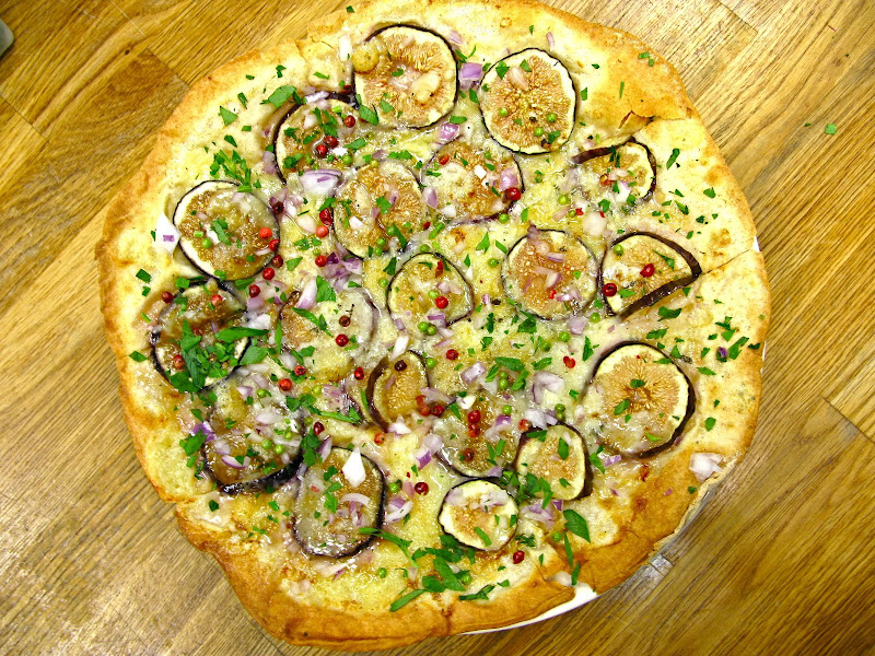 Black Mission Fig & Georgia Blue Cheese Flatbread with Torpedo Onion, Pink Peppercorn & Fresh Coriander